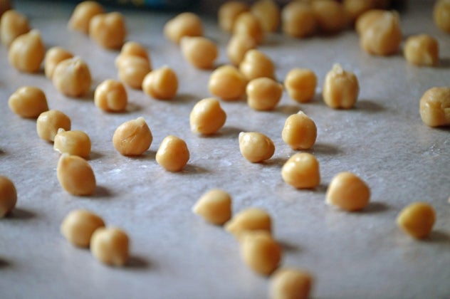 This is my favorite go-to weekday snack. Made simply with chickpeas, oil and some spices, these crunchy chickpeas serve up six grams of protein in a half-cup serving. Plus, they are the perfect salty alternative to potato chips.