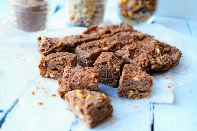 These chocolate energy bites are packed with protein-rich ingredients, like skyr yogurt, nuts, almond meal and chia and hemp seeds. They’re made with a simple no-bake recipe, so you can make an entire batch and nosh on them all week.