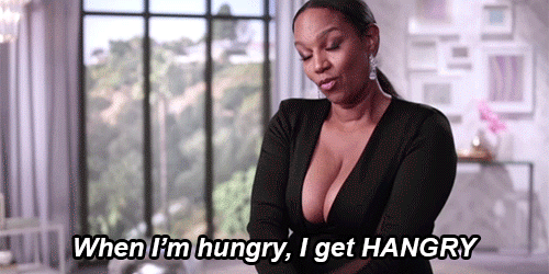 No, you’re not angry that you’re hungry; you’re angry about anything and everything that stands in the way of you and FOOD. All etiquette rules fly out the window.
