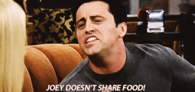 There’s no sharing, waiting for everyone to get their food, offering a taste to anyone else. NO.