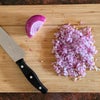 To start, you’ll want to chop one onion. Make sure you reference my video on knife skills so you know how to chop an onion like a pro. All right, our onion is ready to go.