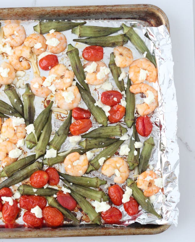 Being a New Yorker, I’ve only had okra a handful of times. But as an avid watcher of cooking shows, I’ve always been intrigued by the ingredient. This sheet pan meal brings together shrimp, okra and tomatoes for a little southern flare.