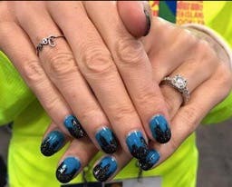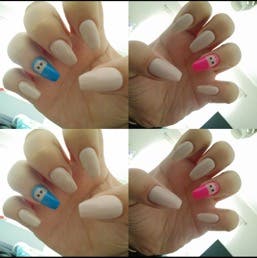 “I’m a nail technician and this mani was created for the 2016 Great North Run. My running group is called ‘Running Ninjas’ and their colors are pink and blue, so it was only right to create pink and blue ninjas on my accent nails. The race was the hardest thing I’ve ever done, mentally and physically, but I did it and I have the bling to prove it!” —Kay Gilligan