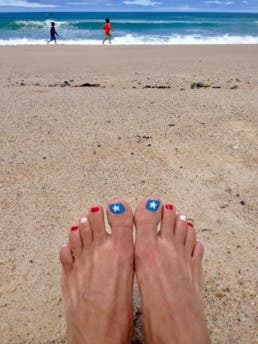 “I was getting a pedicure before my big trip at a place I have been going to for years. All the women there were so excited for me and decided I needed an appropriate ‘Team USA’ design. I absolutely loved it because it also felt a little like Wonder Woman, who I obviously channeled to finish the race strong!” —Allie Burdick