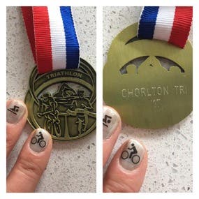 “This was my first triathlon ever; usually, I am a swimmer. It was a small local triathlon in Chorlton Manchester. 750-meter open water swim, 15-kilometer mountain bike and 5k run. I loved it!” —Emma Willert