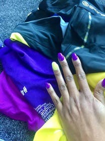 Another popular way of celebrating the accomplishment is with race-day nails. Whether a runner matches their nails to the race theme or uses colors or patterns for inspiration, a special coat of polish in honor of a big race can be a fun tradition. Nine runners shared their race day nails with us and explained why their choices kept them motivated along their routes.
