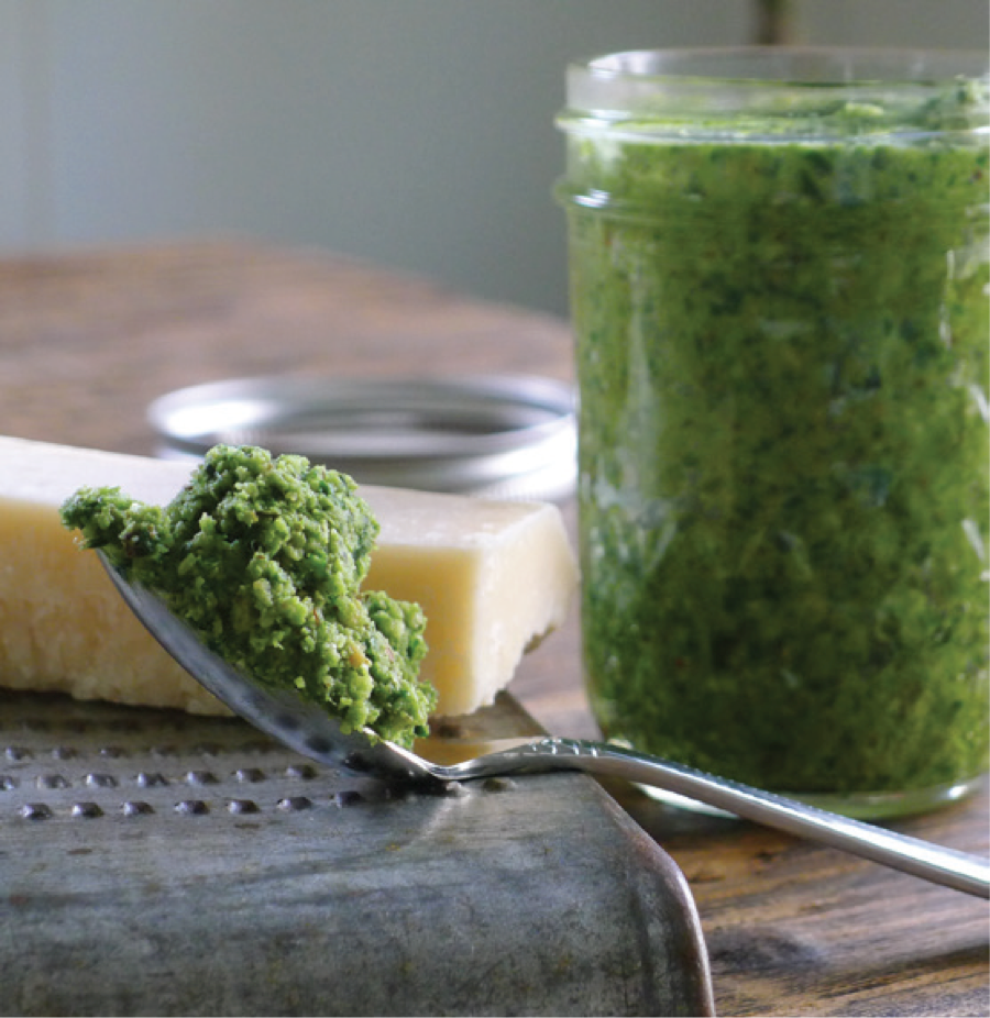 Homemade pesto is a satisfying way to get more healthy fats into your diet, since it’s an enticing whirl of olive oil, nuts and Parmesan. My pesto also sneaks in a serving of nutritious greens from the power combo of kale and basil. The surprising ingredient that gives it that salty umami flavor we all crave is miso, an incredible ingredient for runners since it’s rich in probiotics.