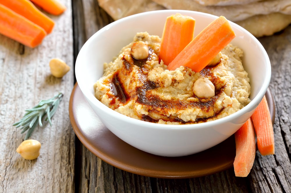 1 cup carrot sticks and 1/4 cup hummus and salsa (120 calories)