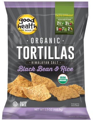 These little squares are USDA Certified Organic and gluten-free tortilla chips made with brown rice flour and black beans, with the same nutrients found in: 2.5 cups broccoli (25% vitamin A); 3.5 beets (25% vitamin C); 5 tomatoes (15% vitamin E); 7 cups spinach (20% vitamin B6); 2 carrots (20% vitamin K) per serving.