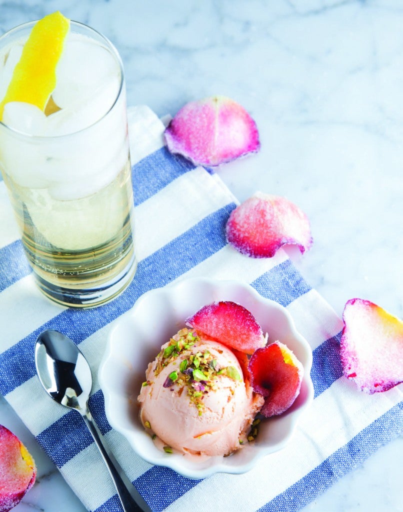 1. This Vanilla Rose Ice Cream (saltpepperskillet.com) starts with the essence of rose water and finishes with the yummy taste of vanilla. Pistachios complement the flavors and give a satisfying crunch. If you have an ice cream maker, get the recipe online. If you don’t have one, maybe one of your neighbors does. I am lucky—Justin McChesney-Wachs, who lives across the street from me, also hosts the above food blog with lots of yummy recipes. I’m always happy to taste test!