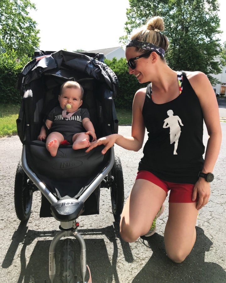 During pregnancy, she ran one half marathon each trimester. Running, she says, was the only thing that helped her feel “normal.” Garzone is currently chasing a goal to break four hours in the marathon, but the path that led her to such ambitions hasn’t been easy—and she believes it isn’t for most new mothers.