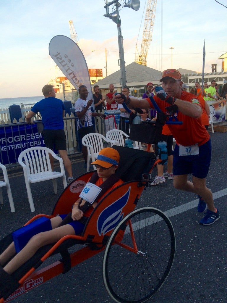 This man, Scott Ruby, was pushing a young woman, Nikki Christian, who had cerebral palsy. He told me, “You have legs, you can power through this.” That put a lot in perspective. Here is this man running the full marathon, assisting Nikki, and I am not pushing anything. He told me that they were going to be the first assist team to ever run the Cayman Marathon. He said we have our legs, we’re lucky to move, so let’s run through the pain, which is only temporary.