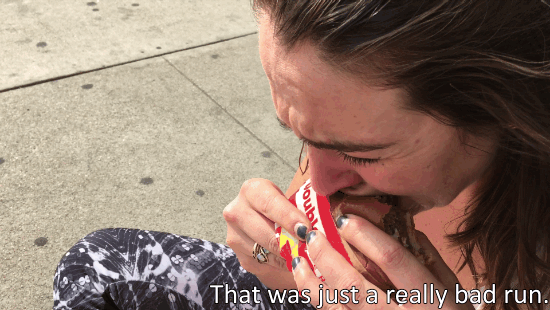 You just have to remember that for every bad run there are infinite great runs ahead. The bad ones are unavoidable and yes, they’re soul crushing, but that’s life! You learn to take it one step at a time. You just have to remember that every bad run makes you that much stronger. Just do what you have to do to get through them! This is what goes down when I have a bad run. I almost always end up crying into a cheeseburger. The struggles of being a runner, am I right?