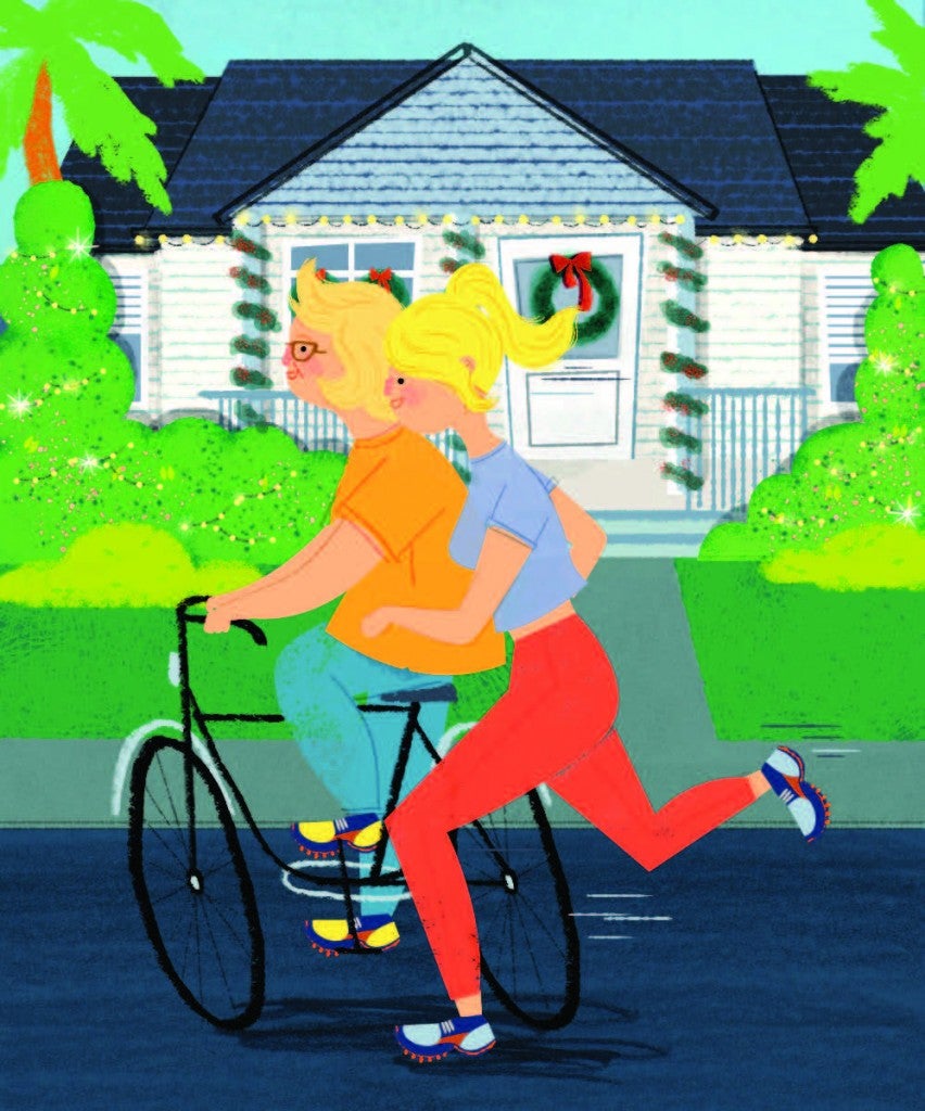 Since I’ve become a runner, it’s turned into a kind of ritual for me. I’m often visiting my parents back home in Florida and have no other responsibilities. My mom (who happens to be my biggest running fan) is there to ride her bike next to me, entertain me with stories and carry my water bottle, and there is no set time we have to be home. The roads are quiet because kids everywhere are waking up and opening presents in their living rooms. If we leave early enough, Christmas lights are still turned on.