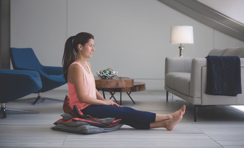 The simple act of sitting on the floor is a huge help in increasing the range of motion in the hips without having to do special exercises or stretches, says Hartman. “It’s the resting position that requires the most mobility in our joints,” she says, which is probably why most of us aren’t sitting on the ground while reading this—after childhood, it’s often just not that comfortable of a spot. “Everyone understands how bad it is to be in a walking boot or a cast—everything gets really tight and immobile. We’re doing the same thing to ourselves with furniture,” she says. But there’s a way to turn the ground into just another nice place to spend time, Hartman says. “Grab some pillows and put them under your bottom until your hips are higher than your knees. I always tell people to grab as many pillows as they think they need, and then grab two more.” As you spend more and more time on the floor—doesn’t matter if your legs are crossed or out in front of you, or turned in or out, just do what’s comfortable for you—you’ll gradually need less and less cushioning as your mobility increases.