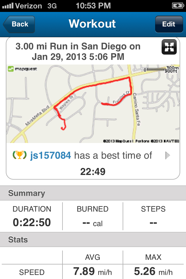 3 miles @ 7:36 min/mile