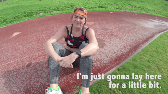 The next best thing you can do to up your attitude game is to celebrate what you can do instead of focusing on what you can’t. I’m talking to you new runners who feel embarrassed by how “slow” you are. You’re not slow. Slow and fast are relative terms. (I know, easy for me to say. I’ve already made it through the new runner struggle.) The sooner you can celebrate the fact that you can run for four minutes without walking and see that as a win, the sooner you’ll start to enjoy yourself. So the next time you hit a milestone like running strong a mile without stopping, celebrate. Dance it out or just throw your arms in the air and scream something like, “I AM A BADASS RUNNER WOMAN!”