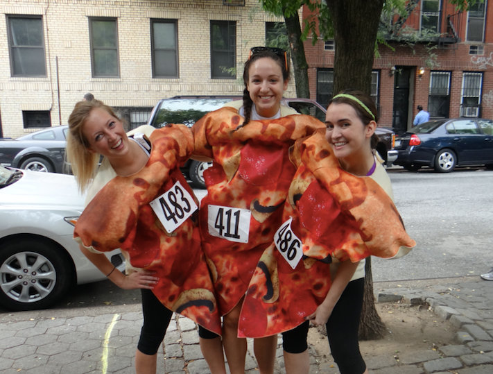 While you may not be able to easily carry a piece of pizza along with you on your run to get ready for the New York City Pizza Run, you could try to eat a pizza before an (easy!) run. Most of these food races are very short distances—often less than a 5K—so you will get to see how your stomach will react to extra carbs or sugars, so you aren’t surprised on race day.